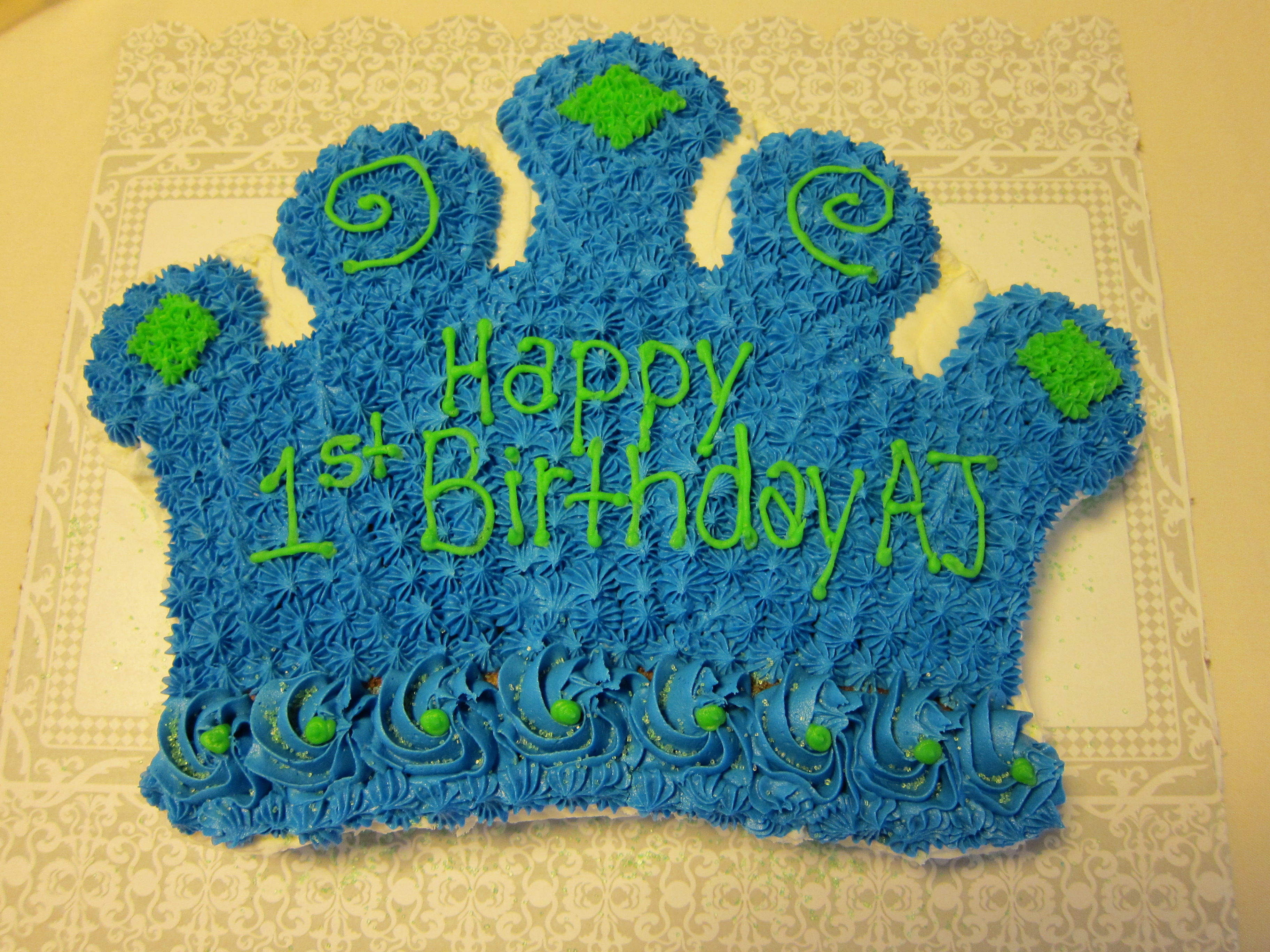 Then there was the little man’s first birthday.  It was my first time making a crown shaped cake!  They had chosen a prince theme so I also made cupcakes with blue chocolate crowns on top and of course, I made #1 cookies.