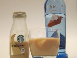 It’s Saturday night, and after a long day of running errands, grocery shopping, cleaning this house that seems to manifest clutter while I am sleeping, and visiting the booth of my fellow blogger Scrapsecrets at the Woodbury Fall Arts Fest (check out her Etsy shop if you are in need of a card for a special occasion – she makes the most adorable cards!), I’m pretty beat. So I went the easy route when making tonight’s drink. I opened a bottle of Starbucks Vanilla Frappuccino, poured it into a glass over ice and then added a shot of my new fall fave – Pinnacle Pumpkin Pie vodka. I admit it, I am obsessed with this stuff. I promise, my next post will involve something else!