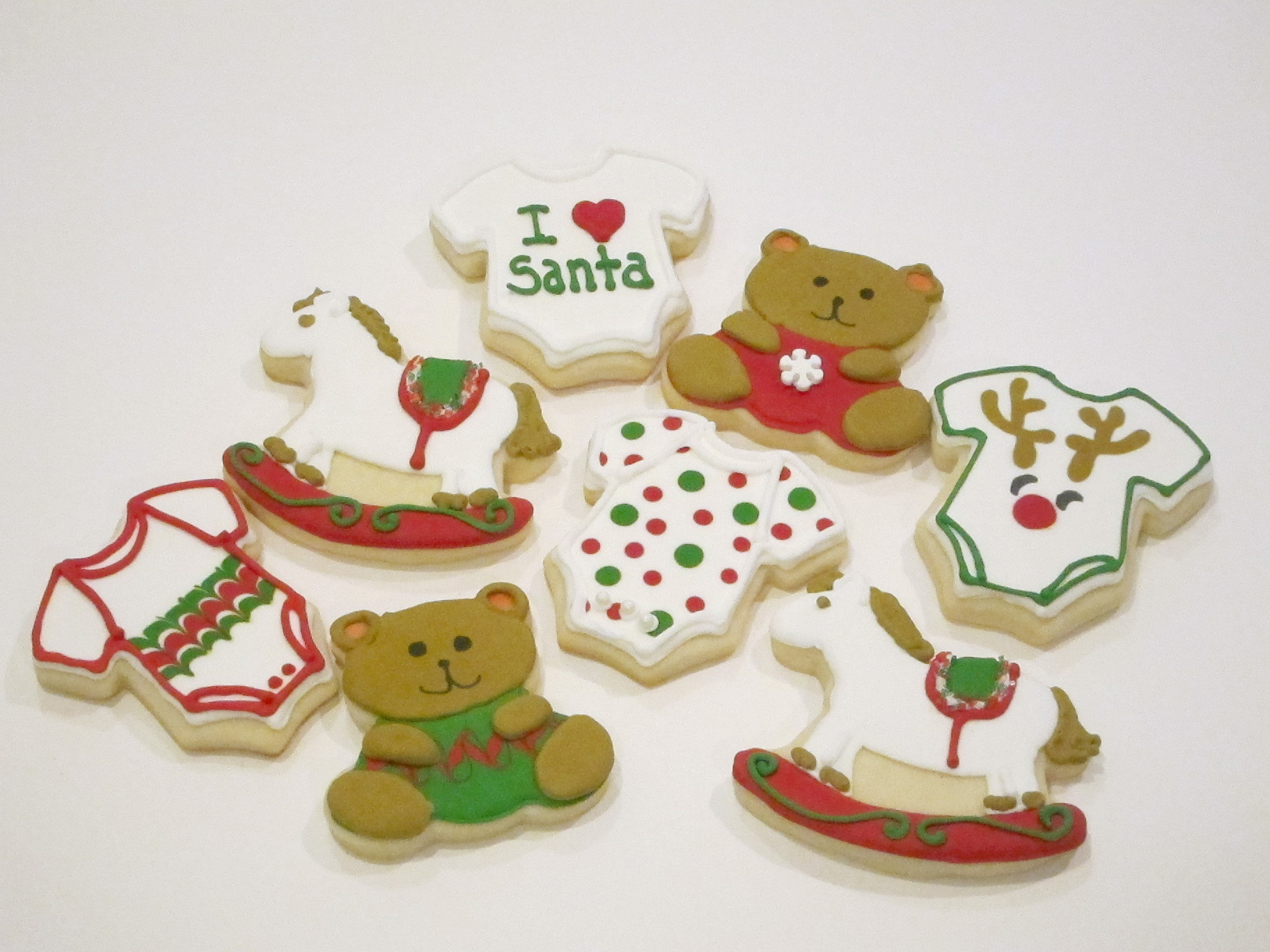 I just delivered this adorable set of cookies to a coworker who is doing a “Baby’s First Christmas” theme this year to celebrate her grandson.  I really enjoyed making the little onesie cookies.  Baby's First Christmas Cookie Set | Shake Bake and Party