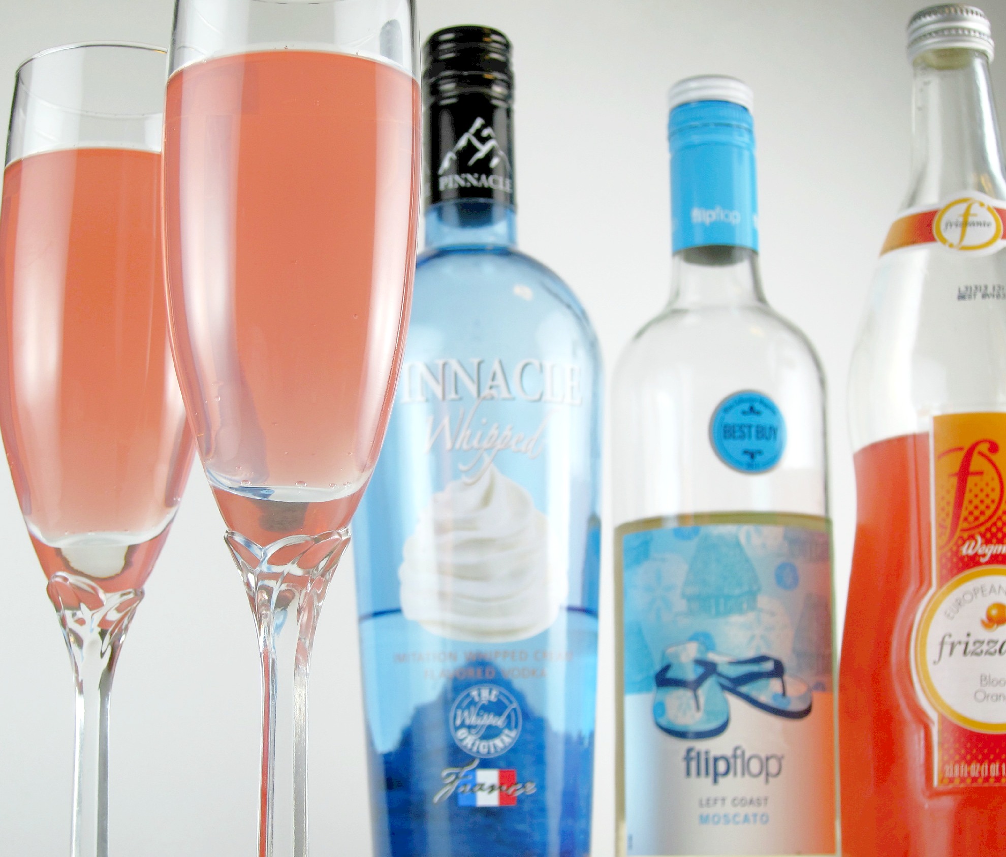 Pour a splash of Pinnacle Whipped into a champagne flute. Fill the glass half way with Moscato, and top off with the blood orange soda. Try not to make everyone jealous with how fabulous you look while sipping this down.