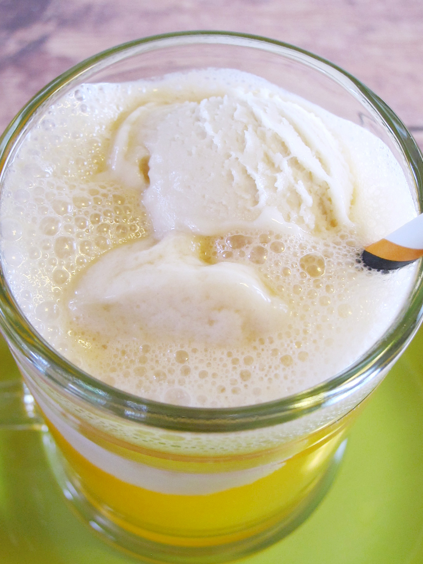 I had plans to just drink the soda while daydreaming about Halloween until my mom mentioned a conversation she had with my brother about adding some vanilla ice cream to it and turning it into a float. So then I had to go to the grocery store in the middle of Sunday afternoon, which I usually try to avoid (you know how mobbed the grocery store gets the few days before Christmas? That’s how our Wegmans is EVERY WEEKEND) to buy some vanilla ice cream.