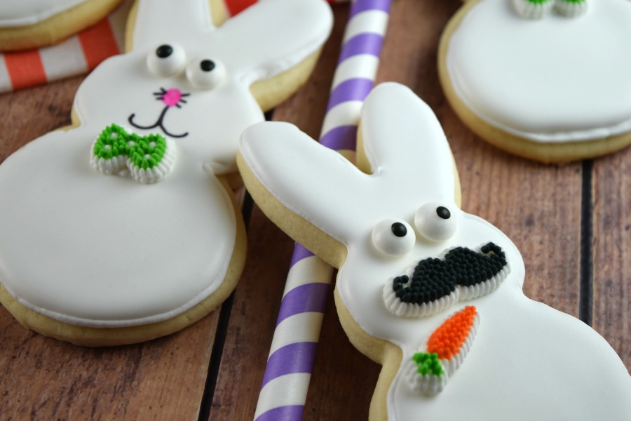 I know a really fun lady who asked me to make some Easter cookies for her grandkids so when I saw these Wilton icing decorations in the stores last week I knew I had to use them somehow. I’m pretty sure she’s going to love these funny bunnies and I hope her grandkids do too!