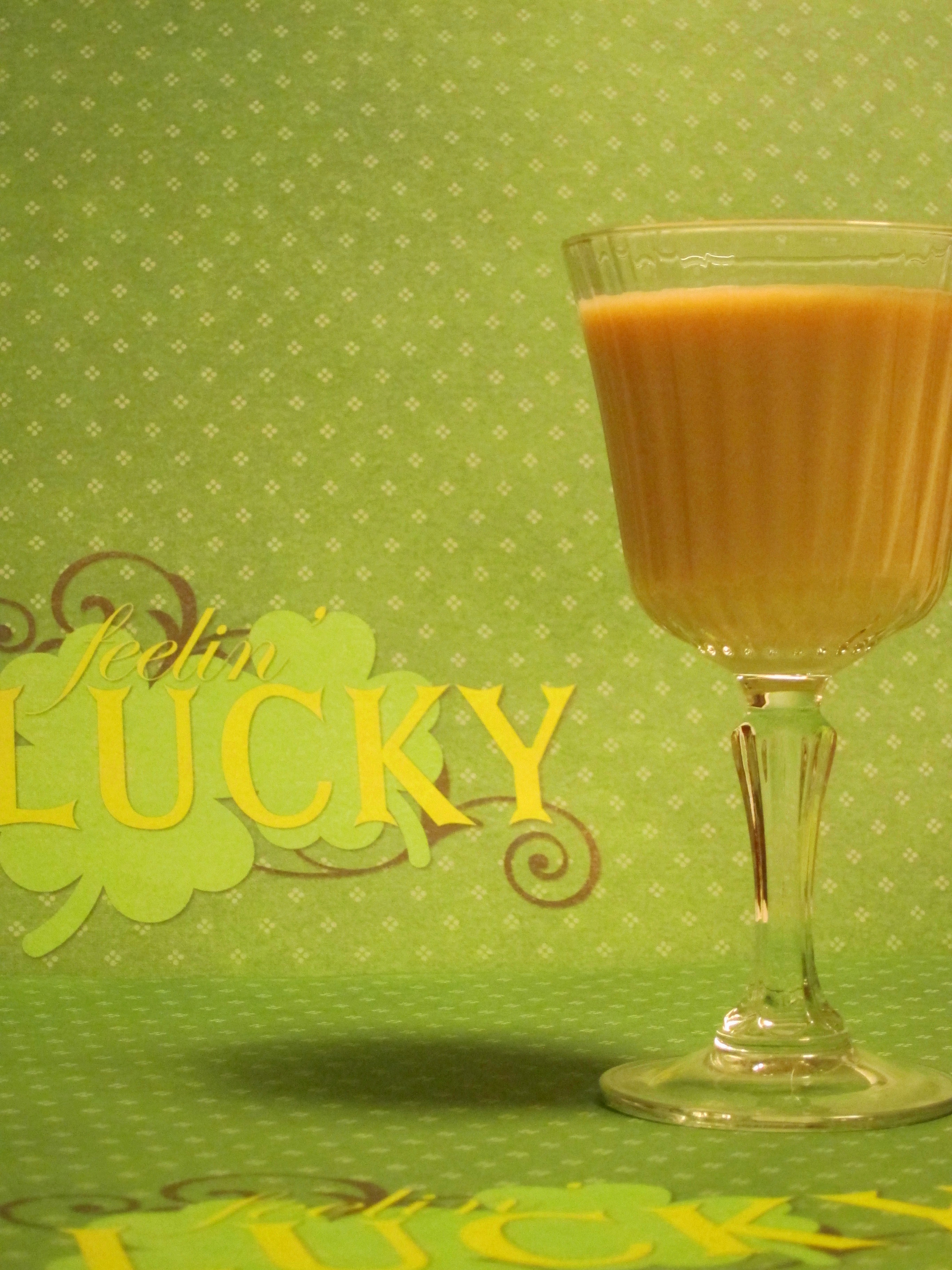 Anyway, as I was waiting for the timer to go off on the cookies I am baking for Operation Cookie Takeover (more on that later) I stood staring at my booze shelf (okay, shelves) and thinking about how I wanted to make an Irish Potato cocktail.  All of the recipes I had found contained Baileys Irish Cream, coconut rum or vodka, and cinnamon schanpps or Goldschlager.  Meatloaf says two out of three ain’t bad, but my lack of the cinnamon booze was not going to make me an Irish Potato cocktail.